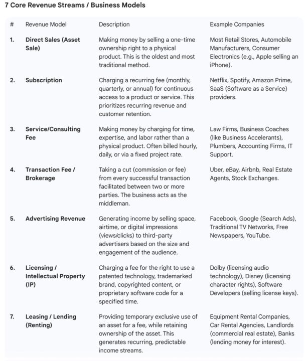 Do you have an attractive business model? A what you ask? Your business model is more than just “how you make money.” There are lots of ways of making money. My colleague, Gemini, provides 7 core ways. Another online resource suggests 22 ways https://www.scribd.com/document/72368472/22-Profit-Models. Yet another suggests 50 ways https://bstrategyhub.com/50-types-of-business-models-the-best-examples-of-companies-using-it/.